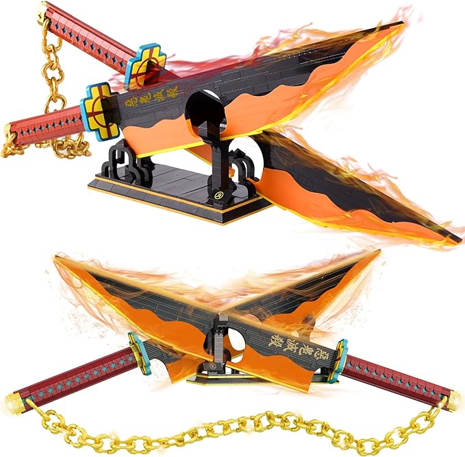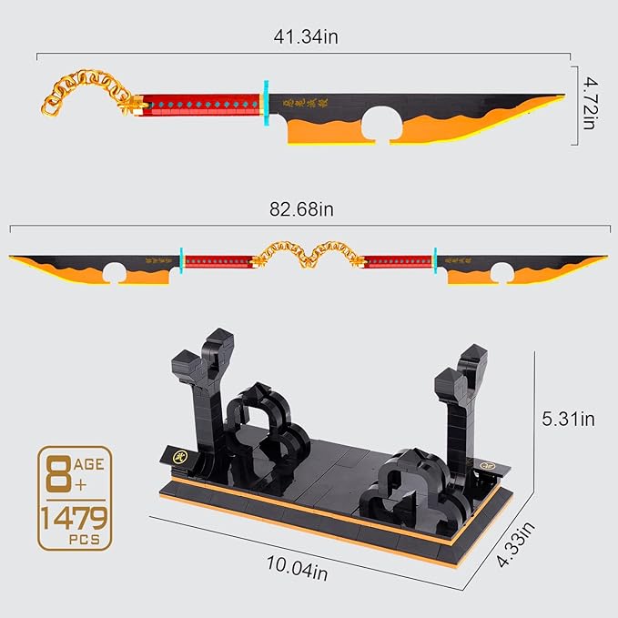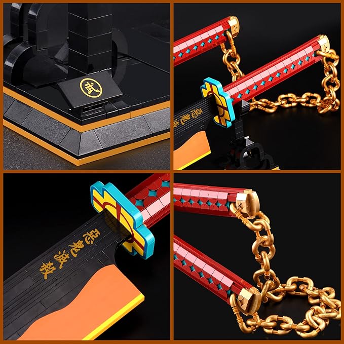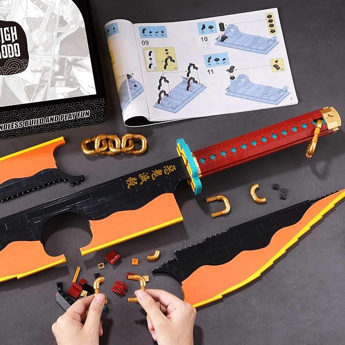 This building set including 1479 pieces for people who like anime swords and anime cosplay. It can be used to hold on and role-playing props.