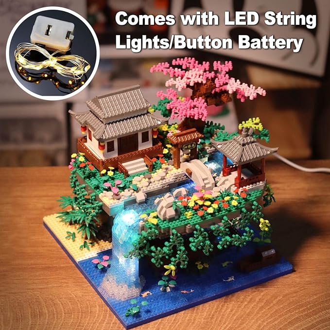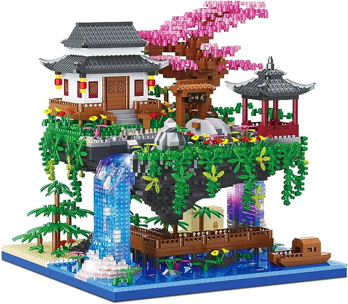 Cherry Blossom Bonsai Tree Building Set, Architecture of Peach Blossom Pond Building Set (3320 PCS)