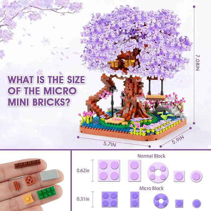 🌸 2200-piece micro blocks set, challenging and requires patience, hidden tree house castle. For 14+ adults and girls.