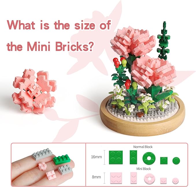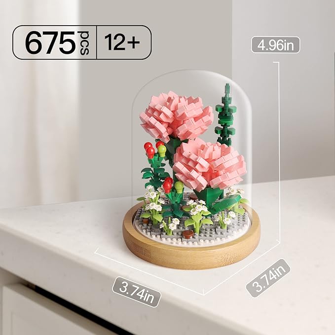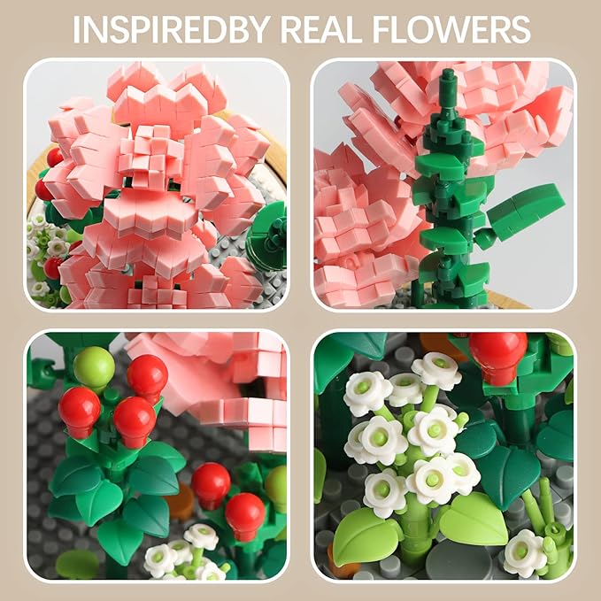 Flower Bouquets Building Sets, Pink Rose Botanical Collection with Display Case (675 PCS)