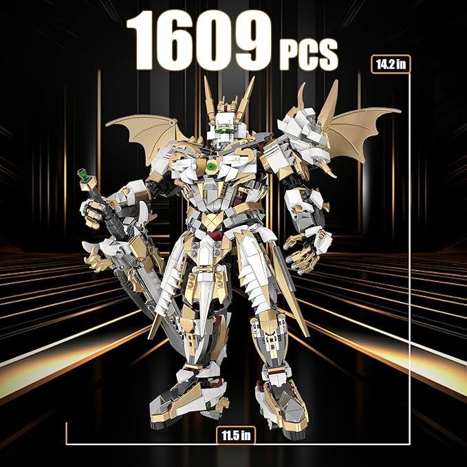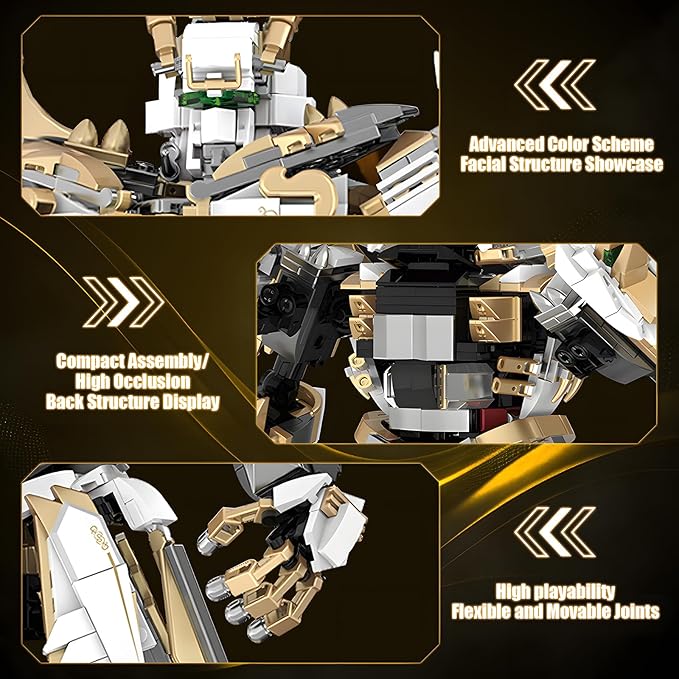 🤖【Metallic Mech Building Set】1609 piece set with movable joints and electroplated metallic parts.