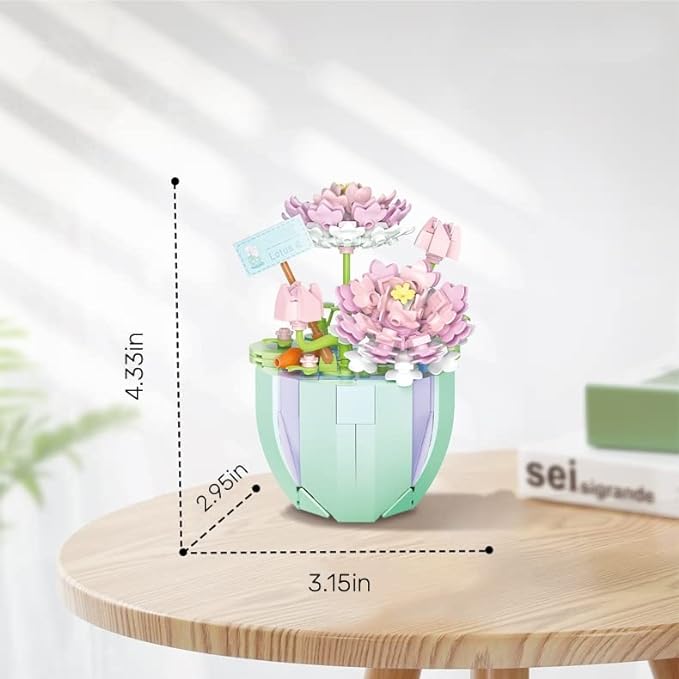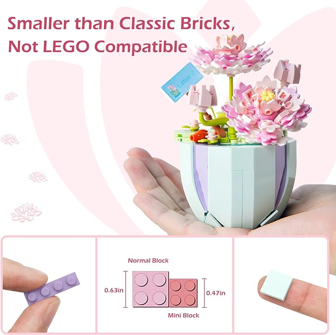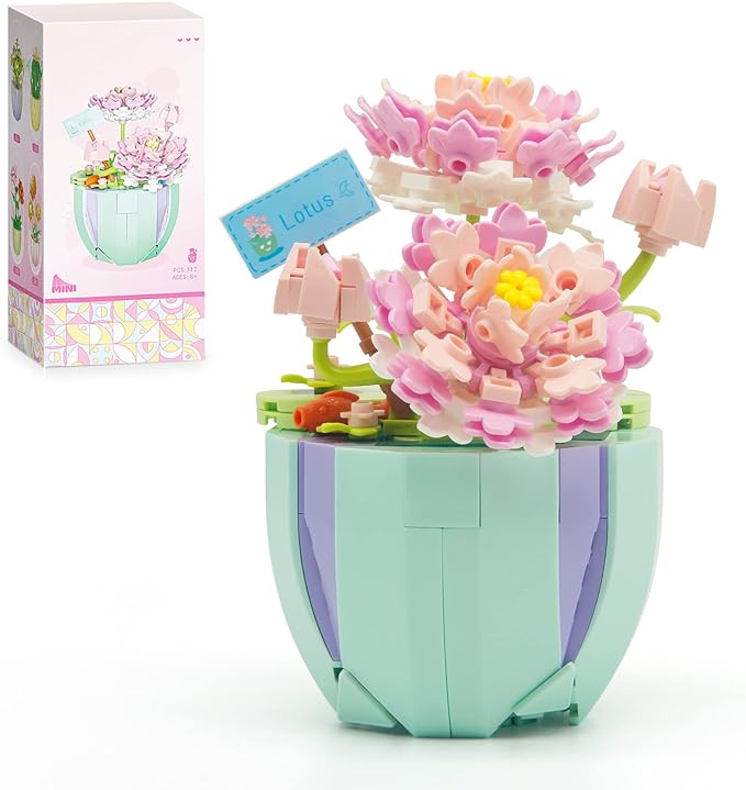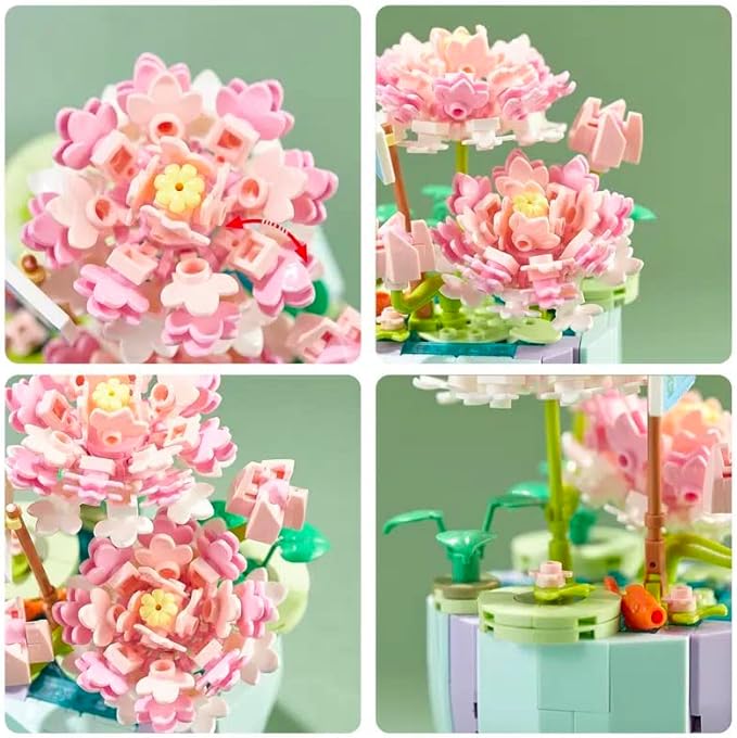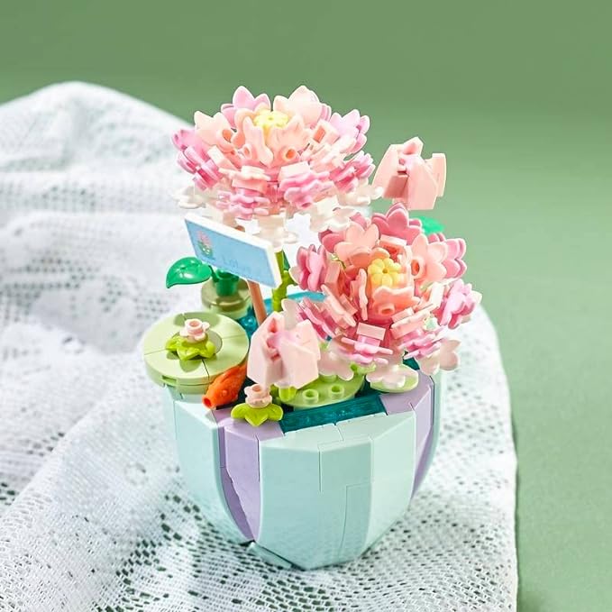 Lotus Flower Building Set, Mini Cute Botanical Collection Flower Bonsai Plant (312 PCS)