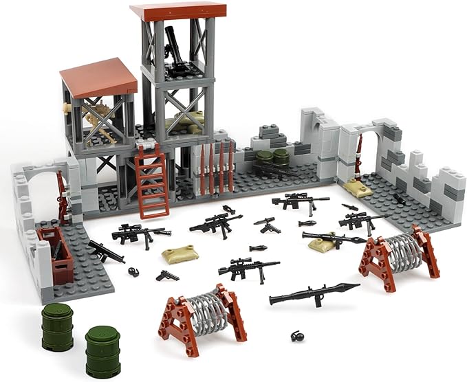 🚀Transformable DIY military base for war scenarios with modern guns and barricades.