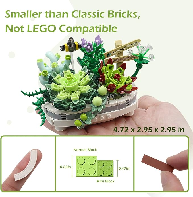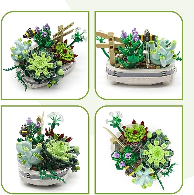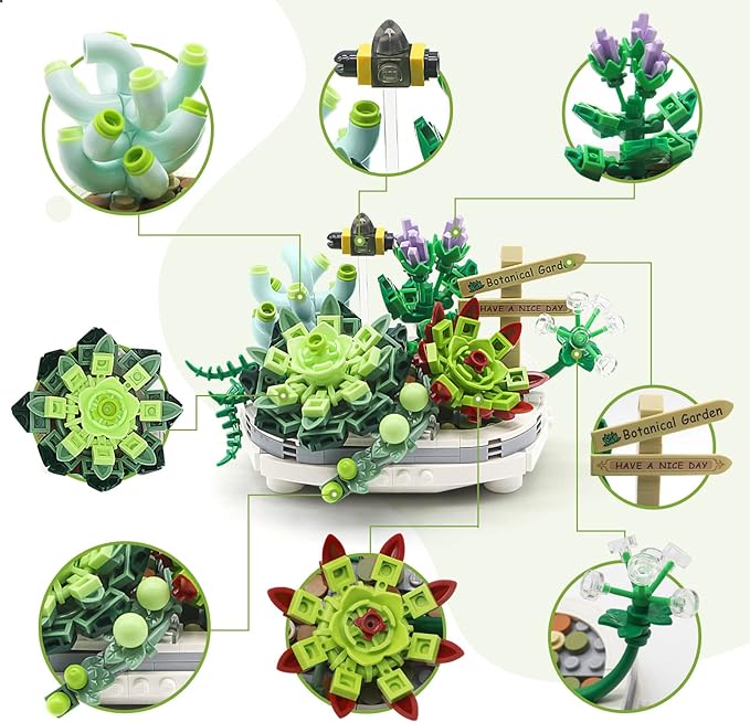 Succulent Bonsai Plant Sets, Mini Bricks Flower Botanical Building Kit (389 PCS)