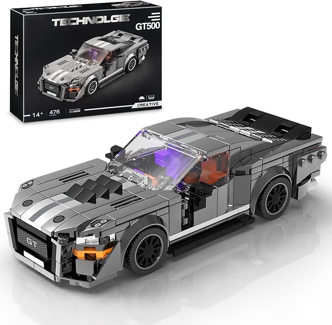 🏎️ GT500 car set with 476 pieces, sleek design resembling real racing cars.